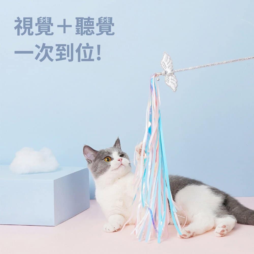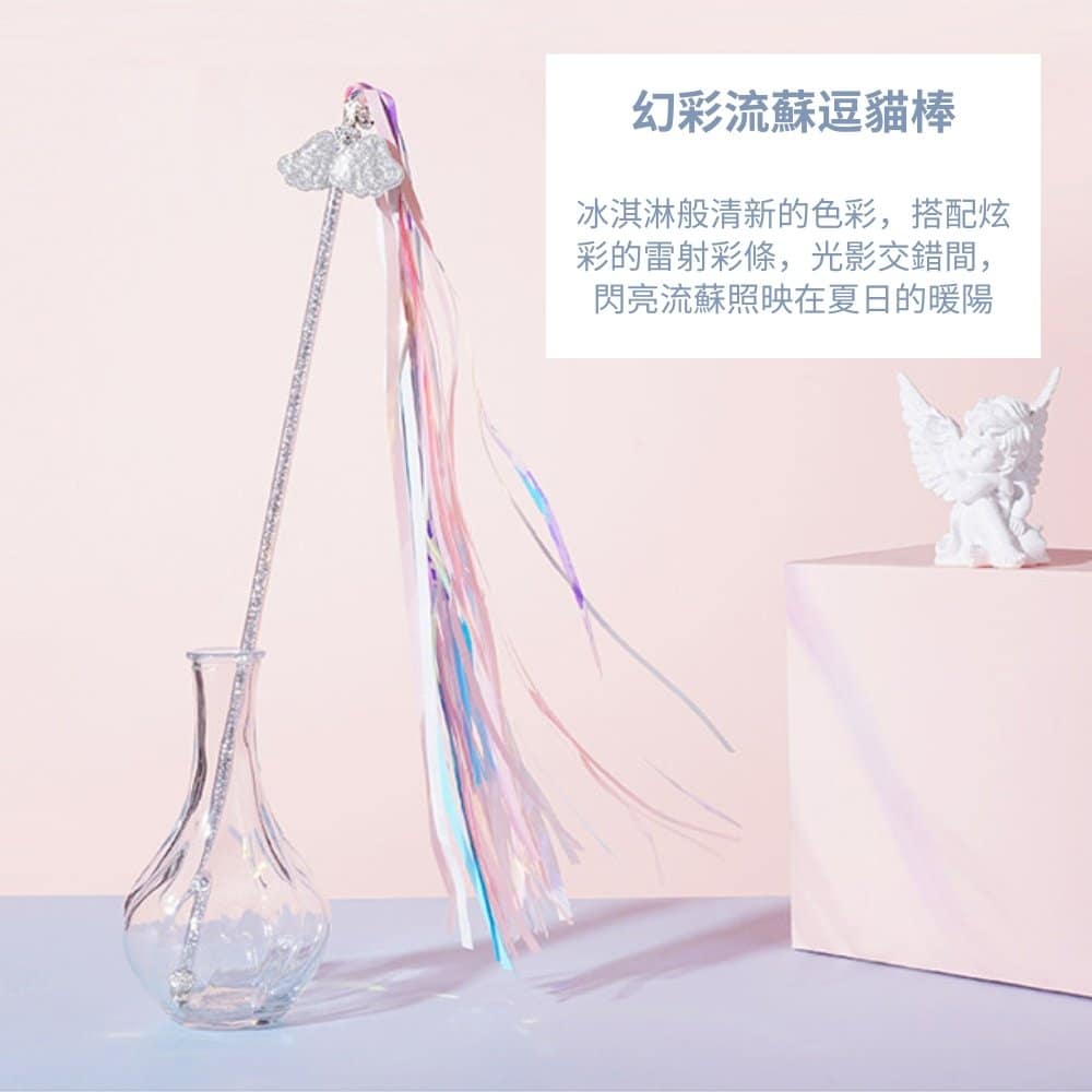 幻彩流蘇逗貓棒,以高亮度反光流蘇打造不規則閃動效果,