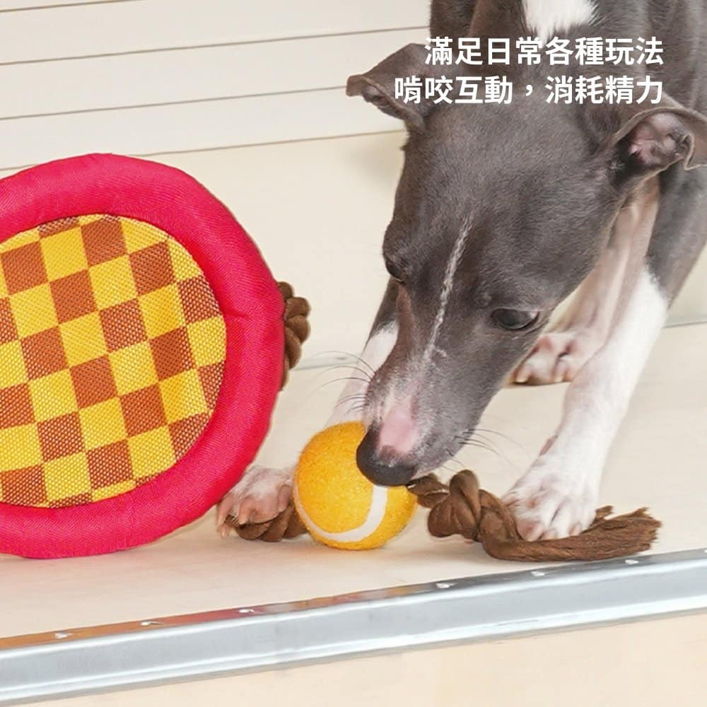 結合網球拍造型與耐咬繩結設計,一玩多用滿足咬咬、拉扯與互動需求