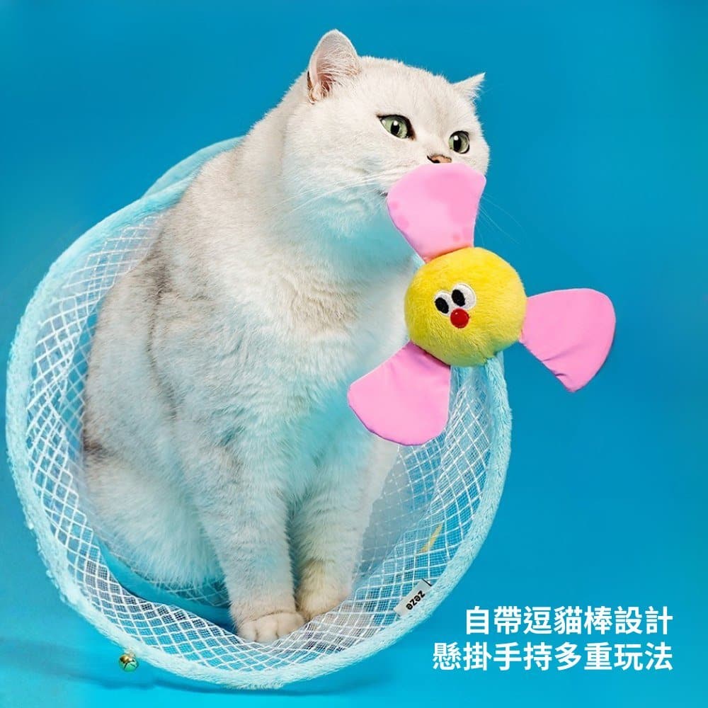 內建多款逗貓元素——懸掛玩偶、鈴鐺與互動配件,隨著移動產生聲響與擺動,瞬間喚醒獵捕本能。