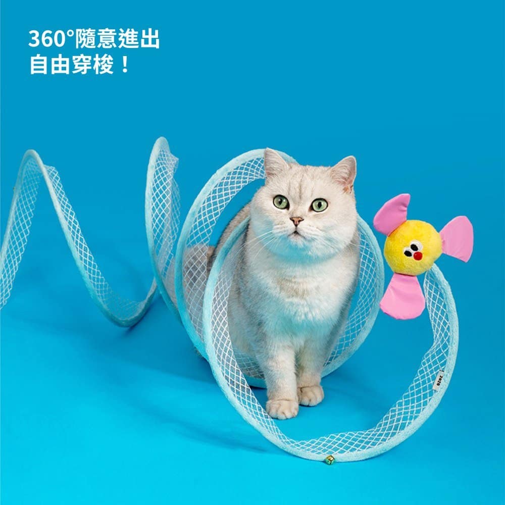 螺旋隧道設計,讓貓咪自由穿梭不設限,搭配逗貓配件激發狩獵本能,耐抓耐咬材質更安心