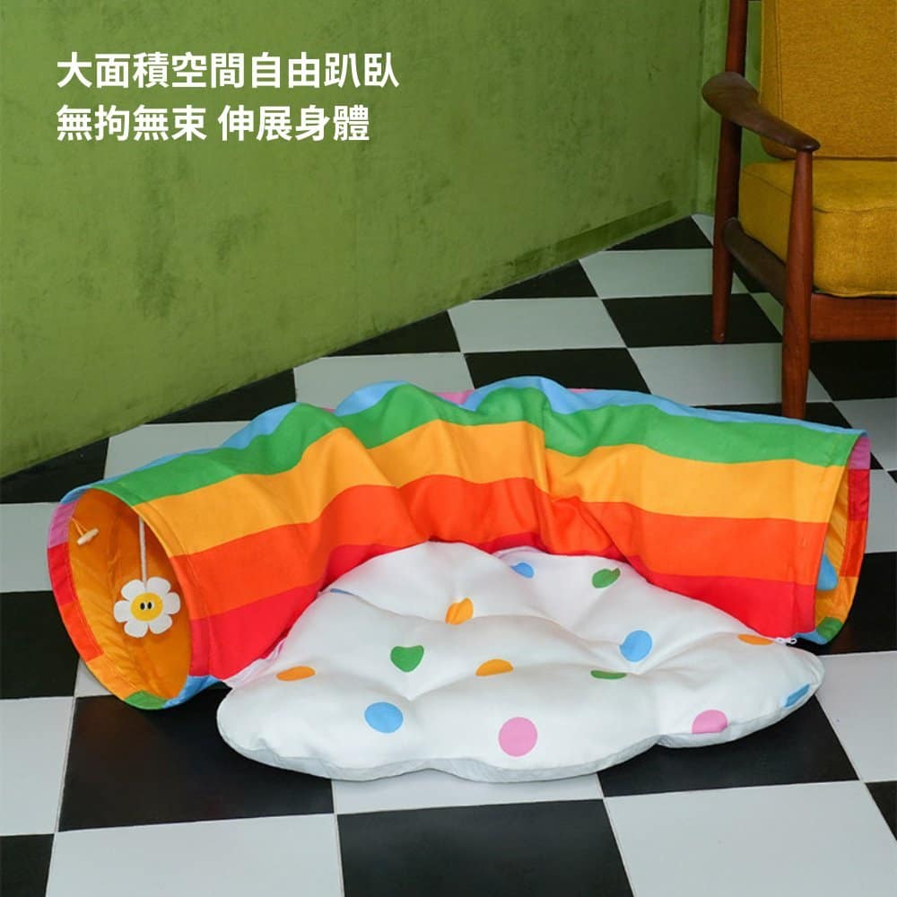 這款「繽紛彩虹隧道寵物床」,將玩樂與休憩完美結合,把家的角落變成一座小小樂園。