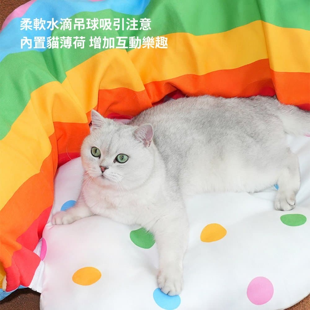 彩虹造型隧道設計,寬敞不壓迫,讓貓咪能自在穿梭、躲藏與觀察,滿足天生的探索與狩獵本能;