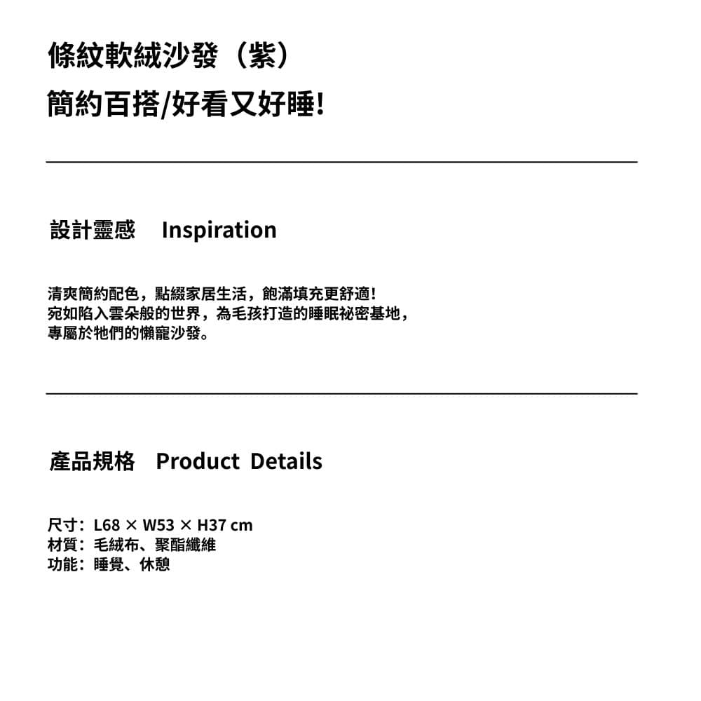 【ZEZE 哲哲】條紋軟絨寵物沙發床(紫) 柔軟條紋絨布結合厚實PP填充,打造包覆感十足的療癒沙發床,側邊可拆扣設計自由變換空間 舒適、好睡又能配合居家設計,讓毛孩一躺就不想離開 \點我購買/ 貨號: Z1B00148 分類: 睡墊 樓梯 描述 額外資訊 評價 (0) 描述 當睡覺不只是休息,而是一種享受。這款條紋軟絨寵物沙發床,以細膩柔軟的絨布包覆,搭配飽滿PP棉填充,提供穩定支撐與蓬鬆觸感,讓毛孩彷彿陷入雲朵般的放鬆空間。 側邊扣子可自由拆解設計,不只是沙發,更能瞬間延伸成寬敞躺床,滿足不同睡姿與伸展需求;加上貼心拉鍊設計,可拆洗更好整理,長時間使用依然維持潔淨與舒適。 簡約條紋外型搭配柔和紫色調,不只是一張寵物床,更像家中一件風格單品,輕鬆融入居家空間,讓毛孩與生活質感同步升級。 給牠一個專屬角落,從窩著、躺著到翻滾,每一種姿態都被溫柔承接。 額外資訊 重量 3kg 尺寸 L68 × W53 × H37 cm 商品評價 目前沒有評價。 搶先評價 “【ZEZE 哲哲】條紋軟絨寵物沙發床(紫)” 取消回覆發佈留言必須填寫的電子郵件地址不會公開。 必填欄位標示為 *您的評分 * 評分… 完美 很好 一般 不錯 很差 您的評價 *名稱 * 電子郵件地址 * 在瀏覽器中儲存顯示名稱、電子郵件地址及個人網站網址,以供下次發佈留言時使用。 相關商品 睡墊 樓梯/隧道玩具【ZEZE 哲哲】繽紛彩虹隧道寵物床 查看內容 睡墊 樓梯/隧道玩具【ZEZE 哲哲】復古電話寵物隧道床 查看內容 睡墊 樓梯【ZEZE 哲哲】爆米花寵物階梯(三階) 查看內容
